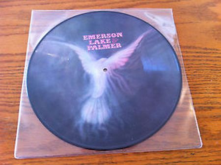 Temos ainda o picture disc onde a foto da capa é estampada no próprio vinil. Como exemplo o disco homônimo do Emerson, Lake & Palmer, conhecido como “disco da pomba”: