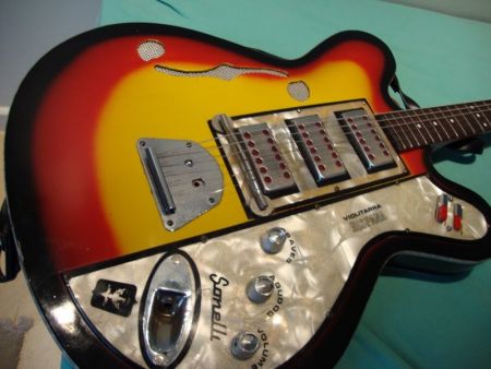 Pronto. Entramos na loja e levei a guitarra para o porta-malas estendido da Belina estacionada em frente à loja (era fácil encontrar estacionamento em Goiânia, com exceção da Rua 20 A que era muito estreita). A guitarra é uma Sonelli, fabricada em Canela no Rio Grande do Sul no final dos anos 60